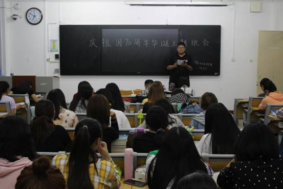 品红色经典,颂祖国青春。各班级团支部陆续组织开展“我爱你中国”诗歌朗诵、“青春礼赞70年”红色歌曲合唱、“为祖国庆生”主题班会等活动,进一步抒发青年学子的爱国情感,培养民族自豪感和自信心。