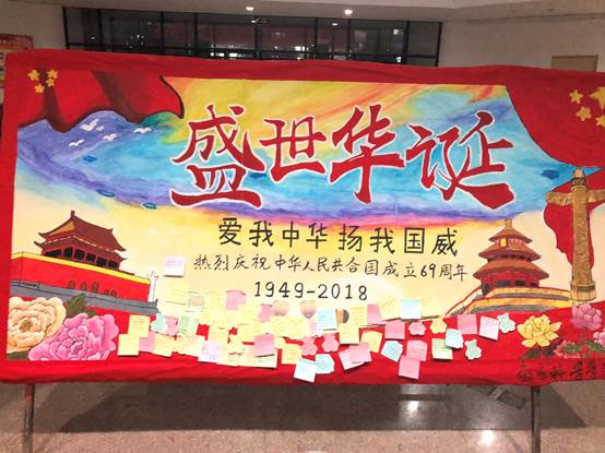 千万祝福生笔尖,数声呐喊震胸膛。学院精心制作的隆重肃穆的迎国庆展板上粘贴着支部全体成员对祖国母亲的祝福。