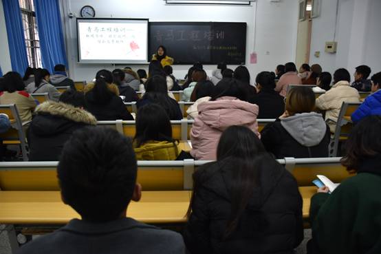 12月4日下午,教育科学学院于1102教室举行“青马工程”系列培训之宣传技能专题培训。培训由辅导员卢璐洁主讲,学生会宣传部全体成员,2017、2018级各班团支书和宣传委员参加。