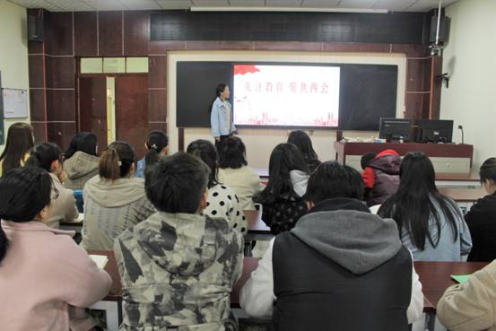 3月24日上午,我院学生党支部在老图书馆四楼教学技能实训室组织召开“关注教育,聚焦两会”主题党日活动。学生党支部全体党员、预备党员参加此次活动。