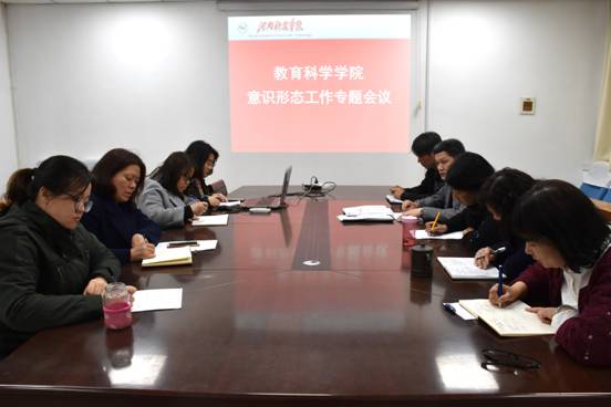 4月9下午,教育科学学院在零号楼十楼学院会议室组织召开意识形态工作专题会议。院党政领导、党支部书记、辅导员参加会议。