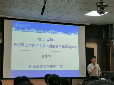 熊华军教授主要从教育硕士的培养目标、教育硕士学位论文的基本要求和教育硕士学位论文的写作框架等方面对教育硕士学位论文的写作进行了详细、生动的讲解。通过熊教授的讲解,使我们对于教育硕士的培养目标和论文写作等问题有了更深入的认识。参会研究生也纷纷表示,通过这次学术报告,使自己对于学位论文的要求、结构框架等问题有了全面的认识,为撰写毕业论文打下了良好的基础。