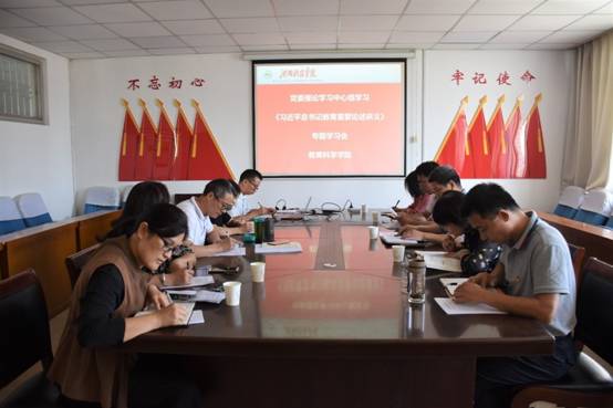 会上,院党委副书记王鲁伟首先传达了关于学习《习近平总书记教育重要论述讲义》的通知精神。随后,与会人员积极发言。院长杨宾峰提出,作为教科人,我们要更加深入学习,师生携手,找到学院未来发展的着力点。下一步将积极开展读书会,将学习习近平总书记教育重要论述的工作落到实处。张涛讲话指出,深入贯彻落实习近平总书记关于教育的重要论述,要强化学习,充分认识习近平总书记关于教育的重要论述的重大意义;要加强研究,把习近平总书记关于教育的重要论述融入科研和课堂教学,学以致用;要创新载体,多形式、多渠道、分层开展学习,确保学习成效,各党支部、教研室要开展相关专题活动。