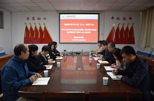 张涛领学了习近平总书记在纪念中国人民志愿军抗美援朝出国作战70周年大会的重要讲话的精神,重点学习了“三个始终没有忘记”、“五个经此一战”、“四个无论时代如何发展”、“五个铭记伟大胜利”、“三个根本行不通”、“两个决不会”等内容。围绕学习内容,院长杨宾峰、支部书记郭庆霞、教研室主任钱晓玲、系主任李红义等分别作了发言。