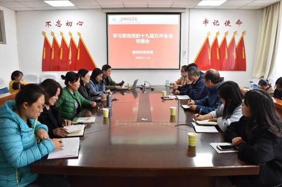大家一致表示,要迅速掀起学习十九届五中全会精神的热潮,进一步学习了解国家层面宏观规划和未来发展蓝图,在干中学,在学中干,认真思考,深入分析,科学制定学院发展规划,为学院发展做贡献。