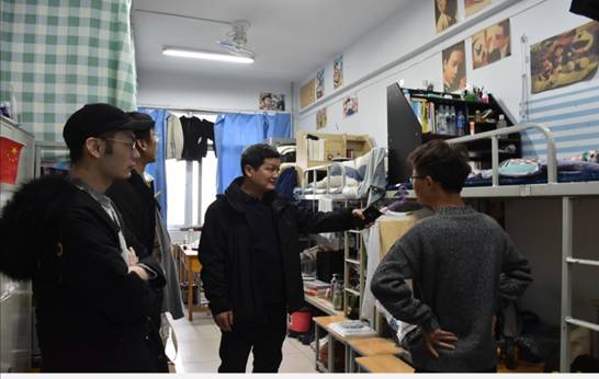 在学生宿舍,院领导和老师详细了解学生们的学习及生活情况、考研准备情况,叮嘱同学们要提高安全意识,保护自身安全,着重强调了宿舍用电安全,提醒同学们在宿舍内要做到不私拉电线、不使用劣质电器、不使用大功率电器,保证“人走断电”。同时院领导和老师还与同学们亲切交流,了解他们的学习情况和生活状况,关心大四学生的实习和考研情况并给予同学们最大的鼓励和祝福。最后,院领导希望院学生会增强责任意识,健全检查制度,善于发现问题并及时解决问题,从而营造安定和谐、积极向上的学院氛围。