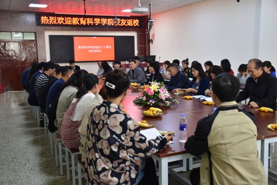 为庆祝我校80华诞,增强校友与母校的联系,促进学校发展,我院邀请了部分优秀校友返校参加校庆系列庆典活动并召开校友座谈会。座谈会于11月2日下午在老图书馆四楼教学技能实训室召开。学报编辑部主任申家龙、马克思主义学院院长王冰蔚、继续教育学院副院长刘秋云、院党委书记张涛、院长李建芹、党委副书记王鲁伟、副院长李小丽、周启及学院部分教师代表、各年级学生代表参加了此次会议。会议由张涛主持。