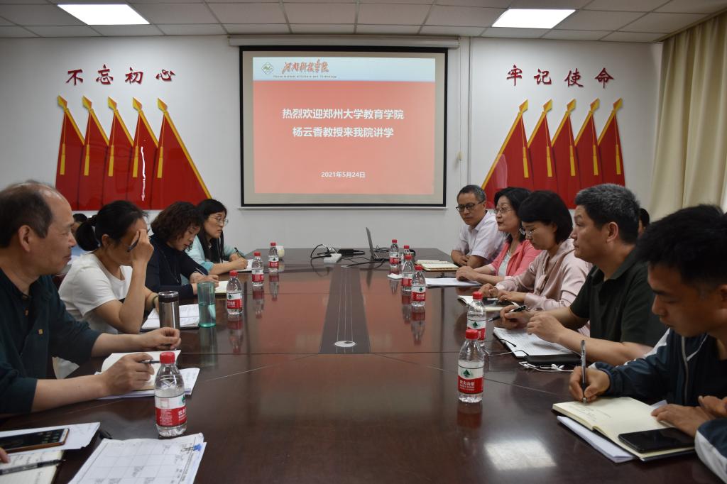 5月24,应教育科学学院邀请,郑州大学教育学院院长杨云香教授做了题为“关于学科建设与科研发展的一点思考”的报告,我院教师、学生40余人聆听了报告。本次报告由副院长李小丽主持。
