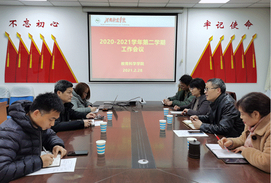 首先各分管副书记、副院长就新学期开学学生报到、教学安排、科研工作、研究生工作等方面作了详细汇报。其次,院长杨宾峰就2021版人才方案修订、《习近平关于教育的重要论述》课程安排、河南省教育学会第36届学术年会筹备、学术沙龙建设等方面进行了整体分析和讨论,表示要与全体教师共同协商、共同促进学院科学发展。随后,学院党委书记张涛从开展党史学习教育、强化学院班子建设、加强中心组理论学习、规范党政联席会议制度、做好疫情防控等各方面进行了工作安排。
