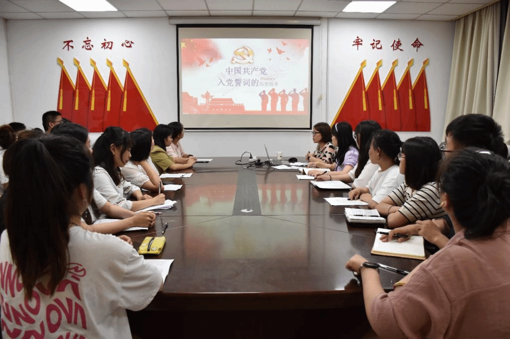 6月16日,学生第二党支部书记熊慧娟在零号楼十楼会议室作题为《中国共产党入党誓词的历史沿革》专题党课,学生第二党支部全体党员到场聆听学习。