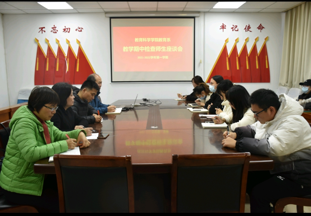 为全面了解和掌握学院教学整体运行情况,促进教学及学生管理工作的良好发展,提高教学质量。11月8日,我院于零号楼十楼会议室召开2021-2022学年第一学期教学期中检查师生座谈会。副院长王晶、教育系主任李红义、专业负责人高佳、教研室主任钱晓玲、于洪姣、杨红旻、郝一宁,教学秘书郭庆霞及学生代表参加会议。