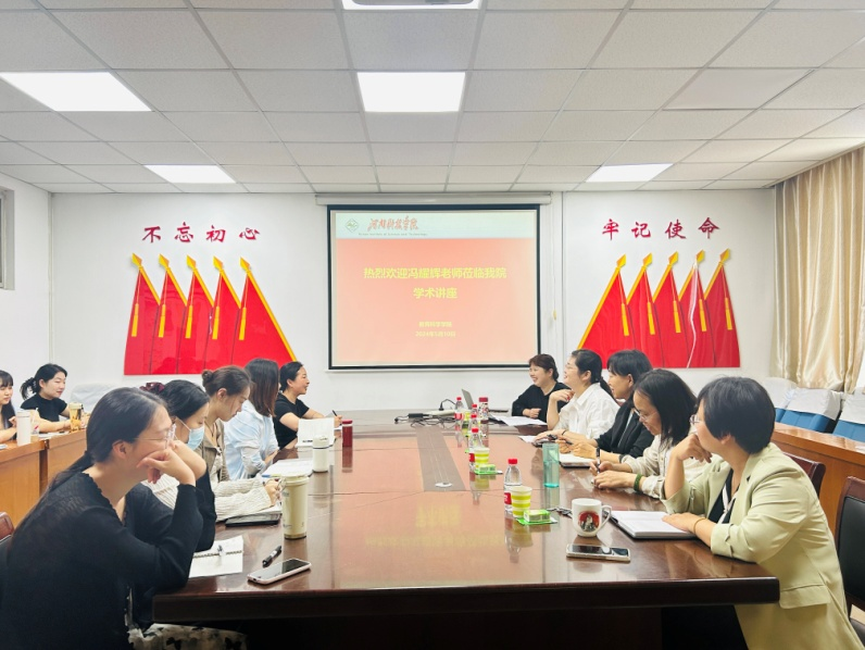 5月10日,新乡市育才幼儿园冯耀辉老师应邀在教育科学学院1008会议室作题为《幼儿教师与幼儿行为管理》的学术报告。教育科学学院学前教育领域研究生、教师代表以及河南科技学院附属幼儿园部分教师参加了报告会,报告会由教育科学学院副院长刘秋云主持。