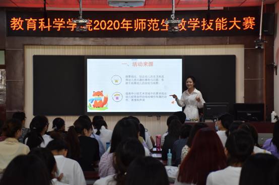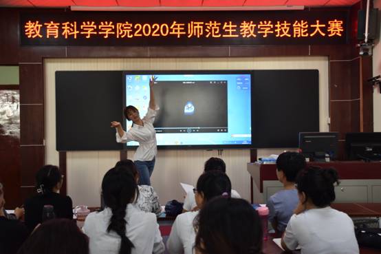 比赛分为说课、答辩、才艺展示三个环节。比赛中,选手们紧扣教学目标,运用多媒体等现代教育教学技术手段与板书相结合,围绕学情分析与重难点步步推进,充分展示了自己独特的教学方法和教学技巧。经过同学们激烈的角逐和评委们认真的评判,最终教育学171班黄晓玲、学前教育174班王涵两名优秀选手脱颖而出,被推荐参加校级师范生大赛。