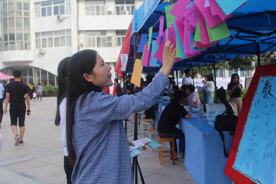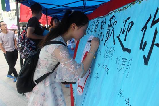 学院制作印有教育科学学院“院徽”的展板,邀请新生写下入校后的第一次“签名”,使新生能够更快的融入教科院的“大家庭”。签名“入住”的形式令“小尾巴”们感受到了教科的温暖。