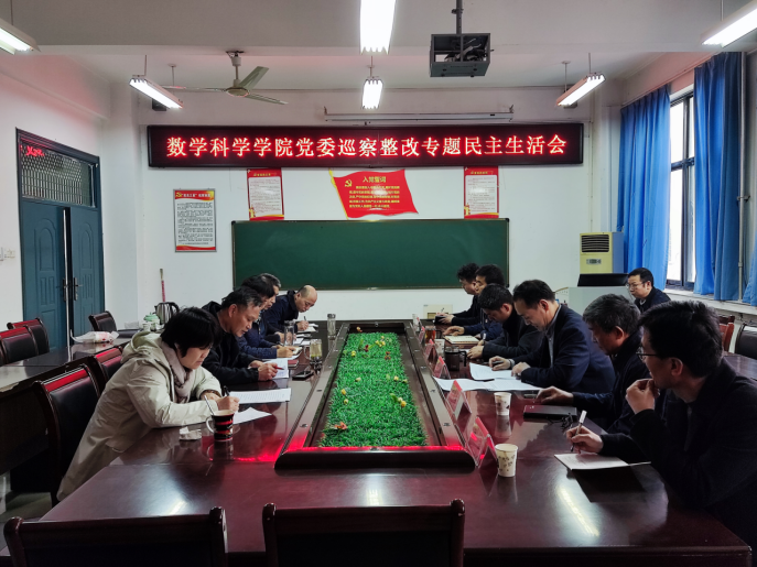 根据校党委巡察整改工作要求,2022年3月15日上午,数学科学学院党委在8#303会议室召开巡察整改专题民主生活会。校党委巡察办主任熊仁杰,第三轮巡察第二巡察组组长、外国语学院党委书记张忠迪,副组长、服装学院党委书记郭建勋,党委组织部正处级党建组织员何雅璞,纪委(监察专员办公室)第二纪检监察室主任宗辉,宣传部副部长方强到会指导。