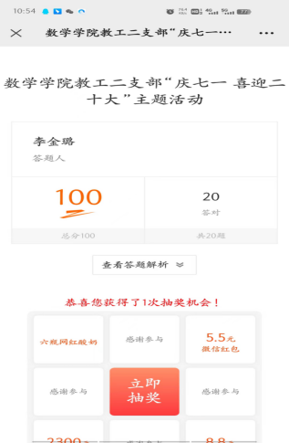 教工党支部开展“庆七一,迎二十大”线上答题活动,大家积极参与,认真作答。通过答题,使全体党员同志进一步了解党、热爱党、拥护党,营造了浓厚的学习氛围。