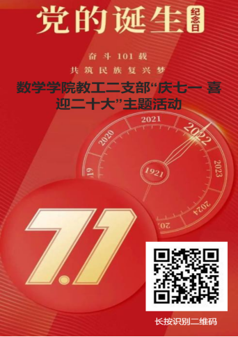 为庆祝中国共产党成立101周年,回顾党的光辉历程,迎接党的二十大胜利召开。7月1日上午,数学科学学院开展“庆祝建党101周年,喜迎党的二十大”主题党日活动。