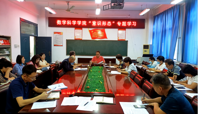 为了进一步加强意识形态工作,9月29日,数学科学学院在学院会议室召开意识形态专题学习会。会议由院党委书记任建成主持,全体教职工参加会议。