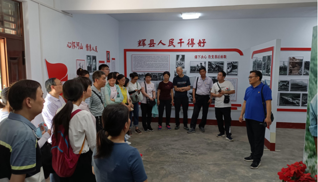 随后,一行人前往参观郑永和先进事迹展览馆。任建成同志在展览馆现场给大家上党课。他详实介绍和回顾了了郑永和同志生平事迹及他带领辉县人民艰苦奋斗的光辉岁月。通过本次党课,大家领略了河南“三杰书记”之一郑永和带领人民创造“辉县人民干得好”的惊天地、泣鬼神的丰功伟绩;感受了“拿起白蒸馍,想起郑永和;拿起人民币,想起郑书记。”辉县人民对郑永和的深切缅怀和高度评价;体会了“说了算,定了干,再大困难也不变”的中国共产党员的干事创业精神。