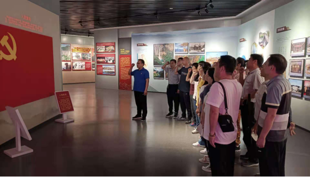 党员同志们来到辉县人民干得好展览馆。大家驻足观看、认真聆听讲解,一页页珍贵文件、一幅幅史料图片、一件件革命先辈书写的手迹,让所有人亲身感受到辉县那一段改天换地的激情岁月,感受到辉县大地优秀党员的光辉事迹。全体党员在学院党委书记任建成的带领下重温入党誓词。