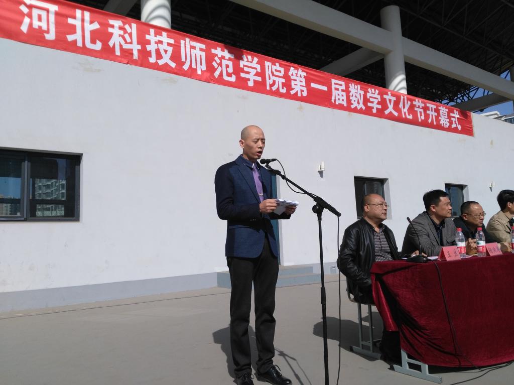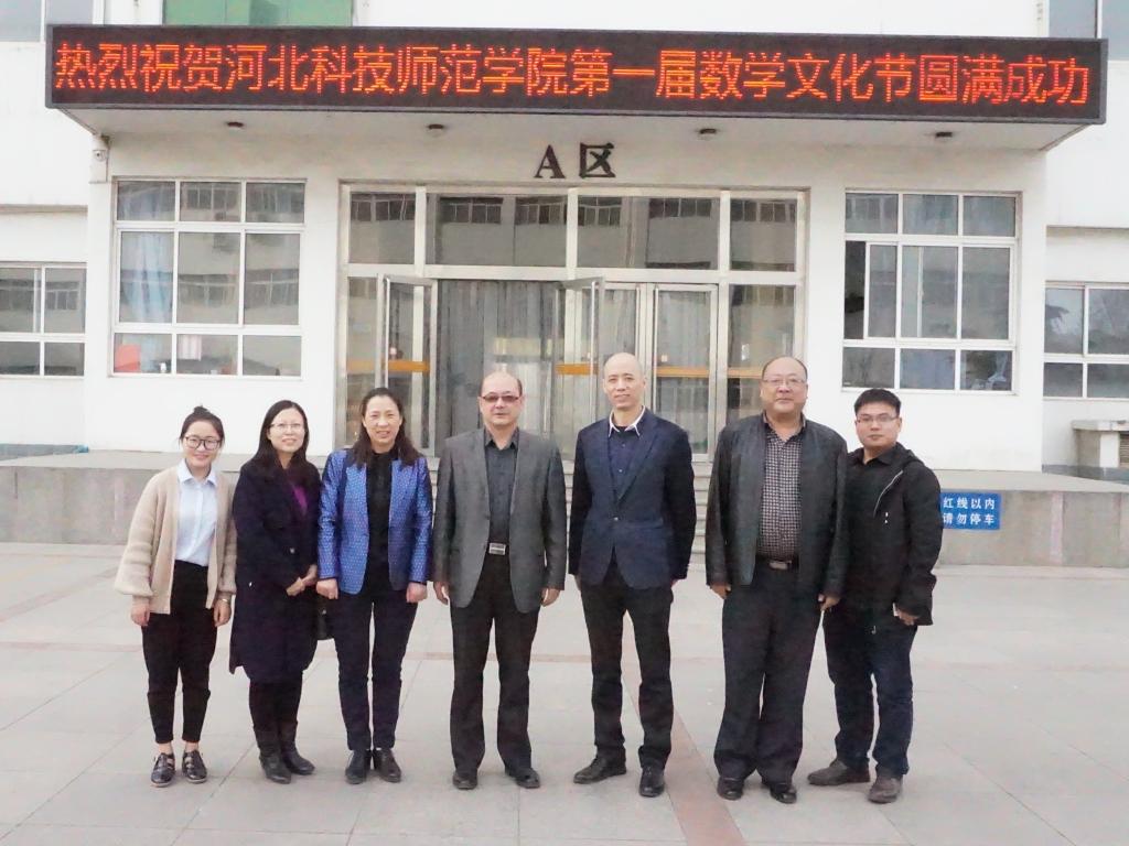 2017年4月9日-10日,我校数学科学学院马宝林副教授受邀出席河北科技师范学院首届数学文化节开幕式并致贺词。开幕式结束后,马宝林副教授又为该校师生做了关于课堂教学、数学文化两场报告。