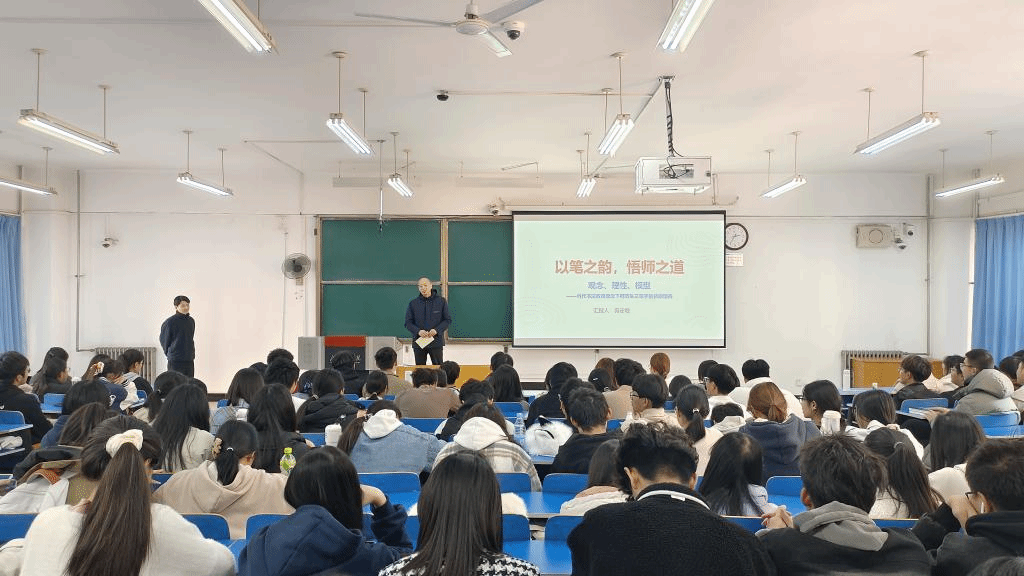苑志敏以“以笔之韵,悟师之道——当代书法教育理念下师范生三笔字的技能培养”为题展开报告。深入剖析了书法教育在审美教育和人文素养方面的重要意义及与数学文化中的审美追求与逻辑思维的连通,通过展示多幅精美的书法作品,从观念、理性、模型三个方面,为同学们分享了三笔字技能提升的独特见解和实用方法。学生们认真聆听,积极互动回应,纷纷表示深刻体会到了数学与书法的内在联系,将积极提高自己的书写技能。