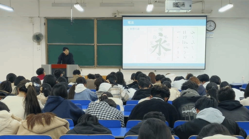 11月21日,数学科学学院特邀2009级优秀校友、河南省人大书画院办公室副主任、首都师范大学书法学在读博士苑志敏在八合一教室作“以笔之韵,悟师之道”专题报告,旨在提升师范生三笔字技能。学院党委副书记马宝林主持,2024级全体学生参加。