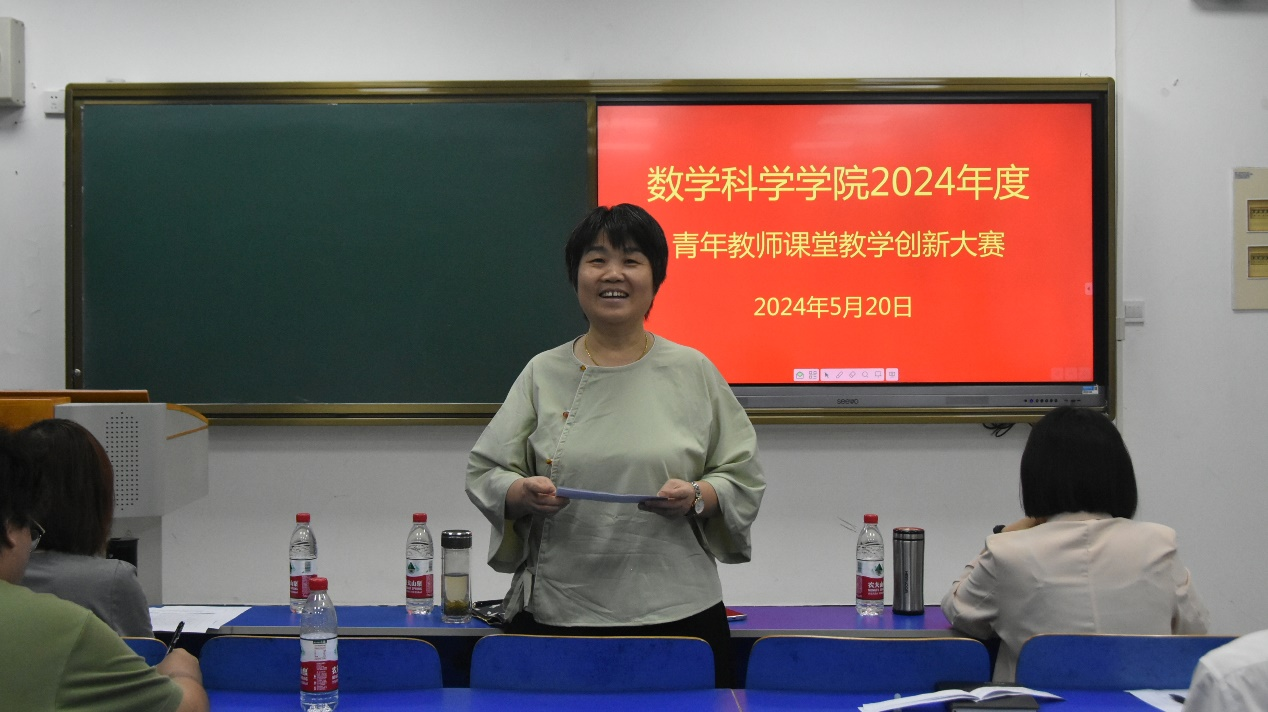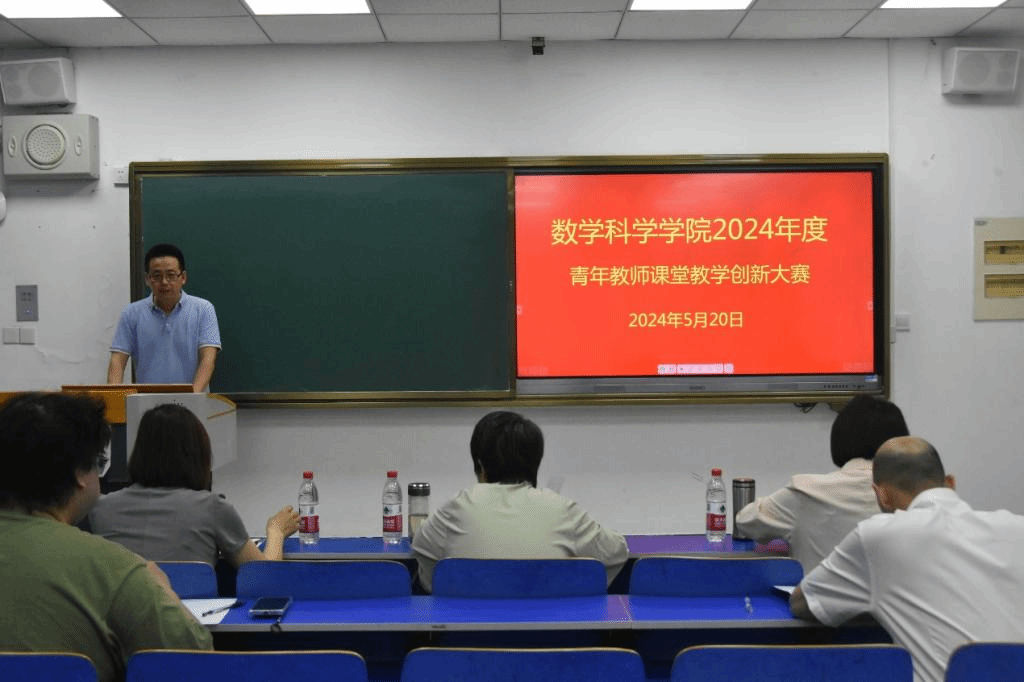 5月20日,数学科学学院在6号楼6501教室举办2024年度青年教师课堂教学创新大赛。食品学院赵霞、外国语学院梁艳利、数学科学学院院长董瑞、党委副书记马宝林及教学秘书陆博担任评委,大赛由教学副院长焦红伟主持。