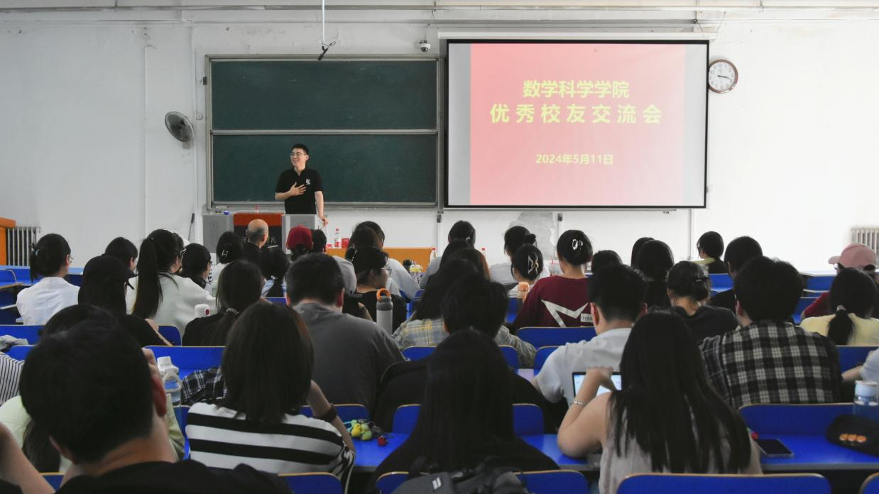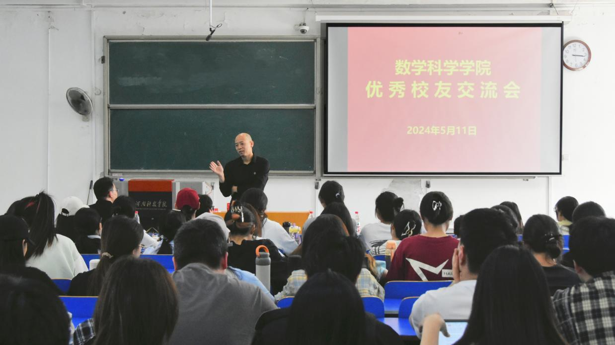 5月11日,数学科学学院邀请优秀校友、郑州航空港实验高级中学校长、郑州艺书高级中学校长王洋洋在八号楼合四多媒体教室为我院学生做成功经验分享。会议由学院党委副书记马宝林主持,辅导员田小霞及2021级学生等240余人参加共同参与。