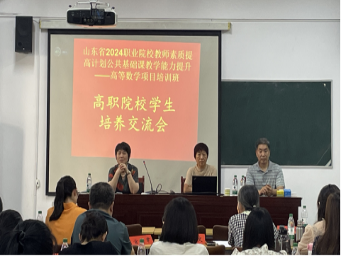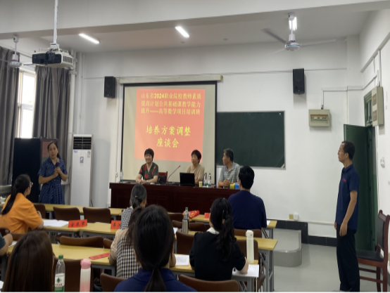 为全面了解我校首次承担的山东省2024年职业院校教师素质提高计划公共基础课教学能力提升高等数学项目培训班的整体运行情况,了解课程内容与学员需求的锲合度及学员其他诉求,全方位提高培训质量。7月27日,数学科学学院组织召开了山东省2024年职业院校教师素质提高计划公共基础课教学能力提升高等数学项目培训班培养方案调整座谈会和高职院校学生培养交流会,数学科学学院负责人及全体学员参加了会议。