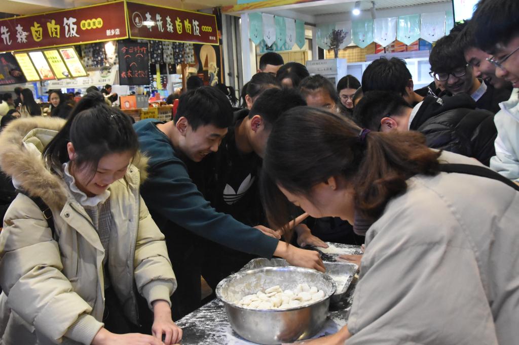 为弘扬中华民族优秀传统文化,烘托节日气氛,12月22日,由我院团委学生会主办的“致敬改革路,奋进新时代”冬至包饺子活动在世纪华联超市举行。我院学生积极参加。