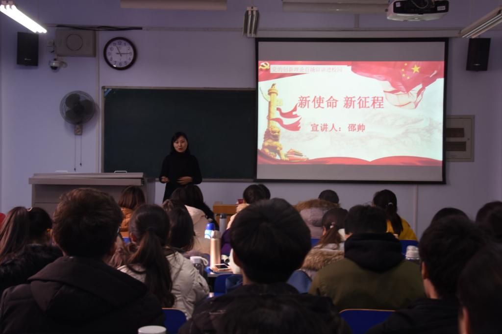 12月26日,数学科学学院开展了“党的创新理论百场宣讲进校园”宣讲活动,辅导员讲师团成员邵帅老师以“《新使命新征程——弄潮儿向涛头立勇担使命续华章》”为题作了精彩的报告,我院全体学生党员以及学生干部认真聆听了此次报告会。