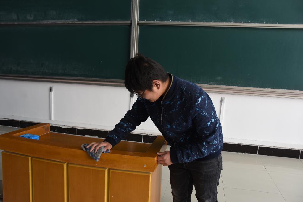 本次活动旨是通过对教室的打扫活动,让同学们更好地学习雷锋精神,把雷锋精神更好地传承下去。本次大扫除的地点主要是八号教学楼合教,包括窗户、桌子和地面的擦洗。在活动过程中,同学们热情洋溢的进行清扫活动,展现了志愿者们阳光向上,精神饱满的良好状态。在大家齐心协力的合作下,终于将教室打扫的干干净。清扫过程虽然持续的时间不长,但是学习雷锋精神的经历却不会被我们忘记,雷锋的奉献精神深深烙在我们心里。