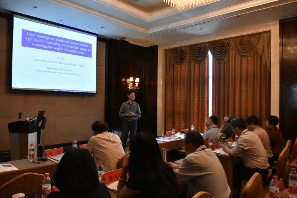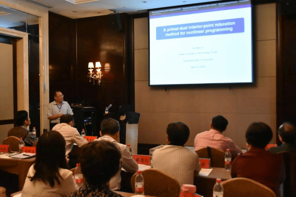 开幕式后,分别来自全国重点高校的11位专家学者做了大会报告,他们分别为:国家杰出青年基金获得者、中国运筹学会副理事长、中国科学院数学与系统科学研究院戴彧虹研究员,中国运筹学会数学规划分会理事长、北京工业大学徐大川教授,中国运筹学会数学规划分会副理事长、大连理工大学张立卫教授,国家杰出青年基金获得者、北京航空航天大学数学与系统科学学院韩德仁教授,南京航空航天大学倪勤教授,华南师范大学李董辉教授,河北工业大学刘新为教授,西安交通大学徐凤敏教授,南京师范大学蔡邢菊教授,华东理工大学王薇教授,上海财经大学王燕军教授。专家们报告了各自在数学优化算法领域研究的最新进展,与会专家学者们围绕报告进行了热烈讨论。