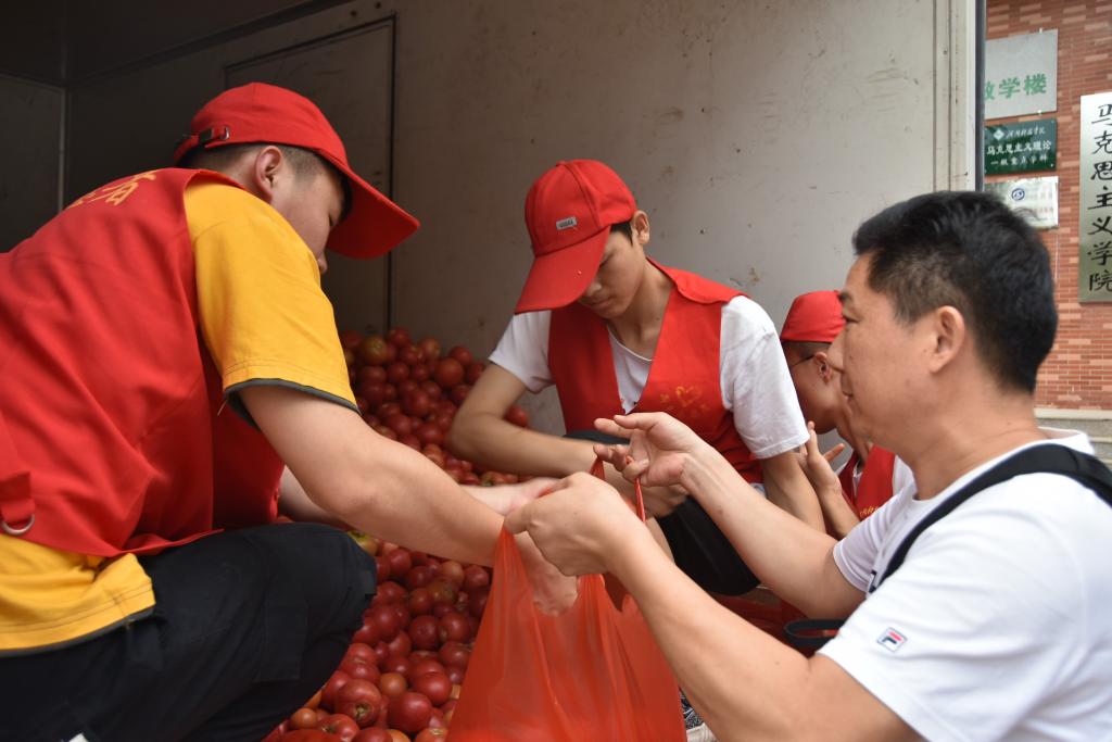 24日下午,我校“爱心认购,助力脱贫攻坚”西红柿爱心认购活动现场,由全体党员和入党积极分子自发组织的爱心服务队在8号教学楼前和老行政楼天井处热火朝天的忙碌着。本次活动旨在帮助封丘县黄陵镇闫庄村的贫困户和低收入者销售自家种植的绿色无公害西红柿。活动得到了我校师生们的大力支持,大家奔走相告,积极踊跃认购爱心西红柿。