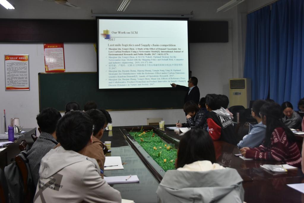 10月16日晚,应数学科学学院邀请,上海理工大学屈绍建教授以《供应链优化与博弈研究》为题在学院会议室进行学术报告。我院师生代表40余人聆听了报告。