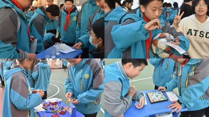 团队成员向同学们详细介绍了精心准备的数学长廊和趣味游戏。同学们涌入五大展区,亲身体验其中蕴含的数学之美、数学之韵。同学们在古典诗词、数学历史、数学家的故事展区中探寻数学概念和理论的起源、发展及其演变过程,在“‘玩’转数学”展区的14个经典数学游戏中激发学习数学的动力,并在数学猜谜、趣题秒解、数独九宫等环节中锻炼逻辑思维能力。