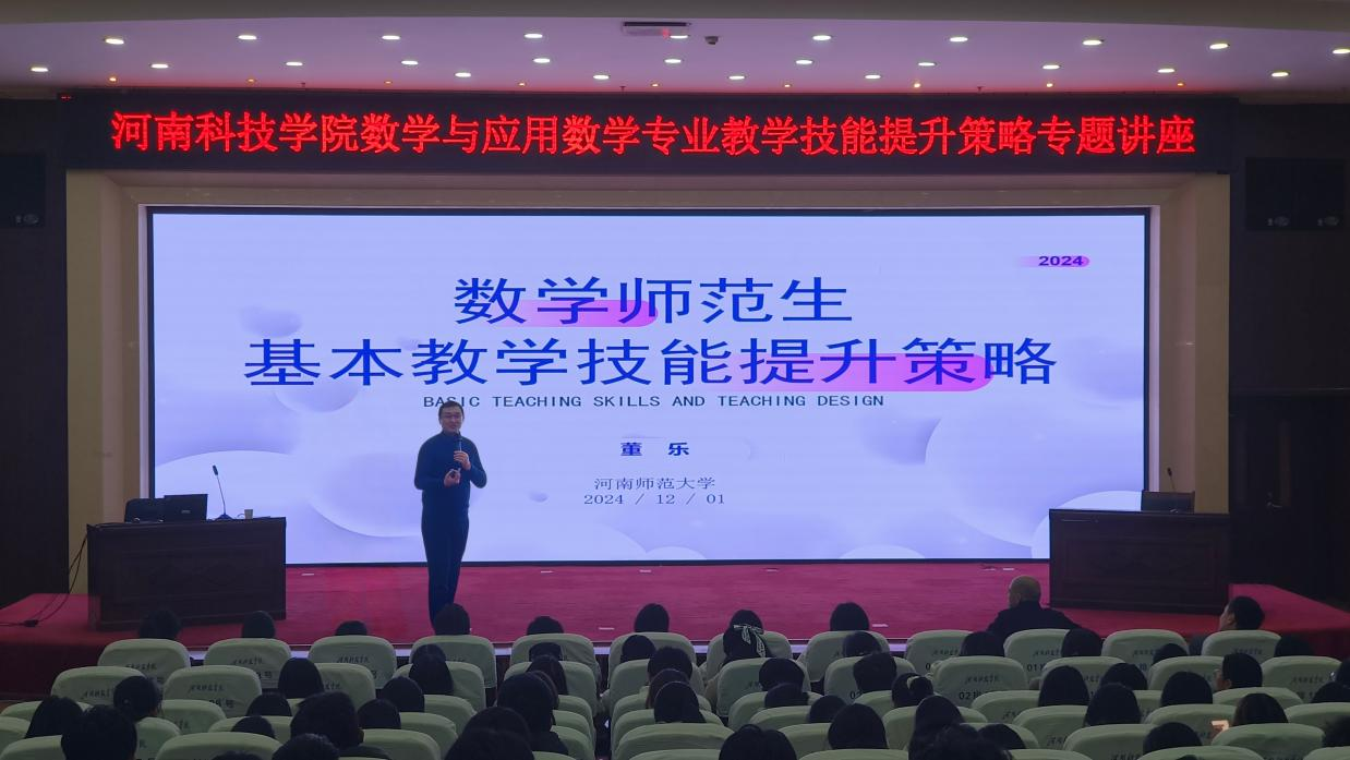 12月1日,河南师范大学高层次人才工作办公室主任、人力资源部副部长董乐应数学科学学院邀请,在我校办公楼308报告厅开展了题为“数学师范生基本教学技能提升策略”的专题讲座。院长董瑞主持,学院一二年级全体师范生聆听了讲座。