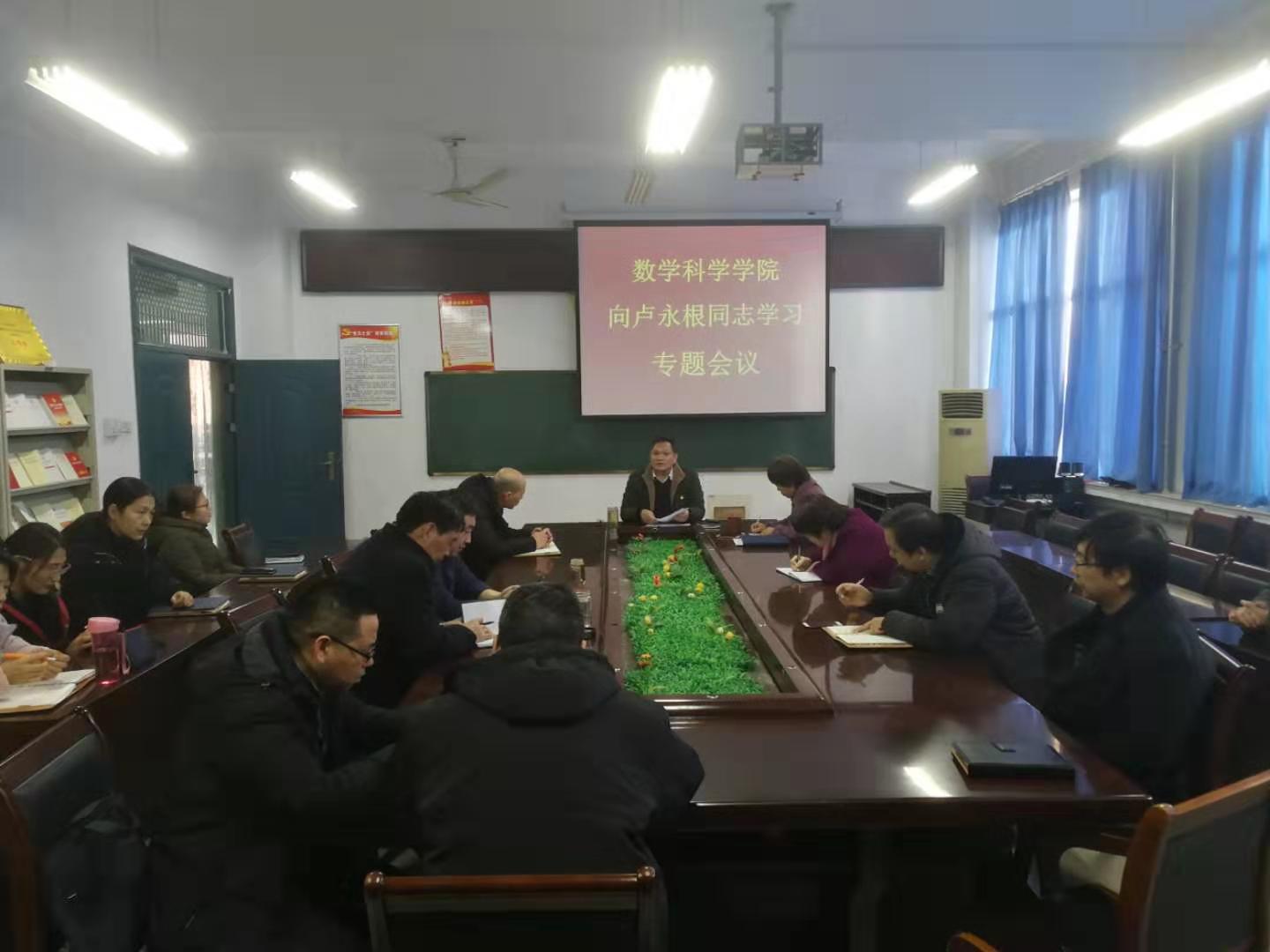 根据省教育厅《关于在全省教育系统深入开展向卢永根同志学习的通知》文件精神和学校安排,12月26日下午,我院在学院会议室开展向卢永根同志学习专题活动。学院领导班子、科级以上干部和支部书记参加本次活动。