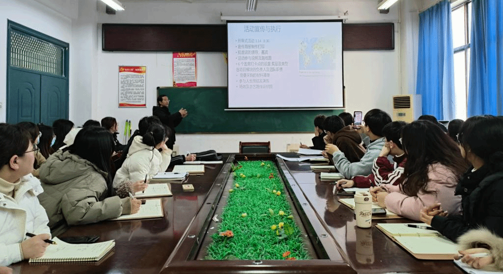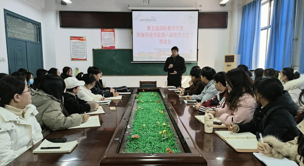 为进一步传播数学文化,弘扬数学精神,保障数学文化节的高效率、高质量开展。2月29日下午,数学科学学院在八号楼三楼会议室召开第五届国际数学节暨河南科技学院第六届数学文化节推进会。院党委副书记马宝林、团委书记曲富柱、团委副书记李金璐、辅导员田小霞、专业教师姚少魁及全体学生干部参会。