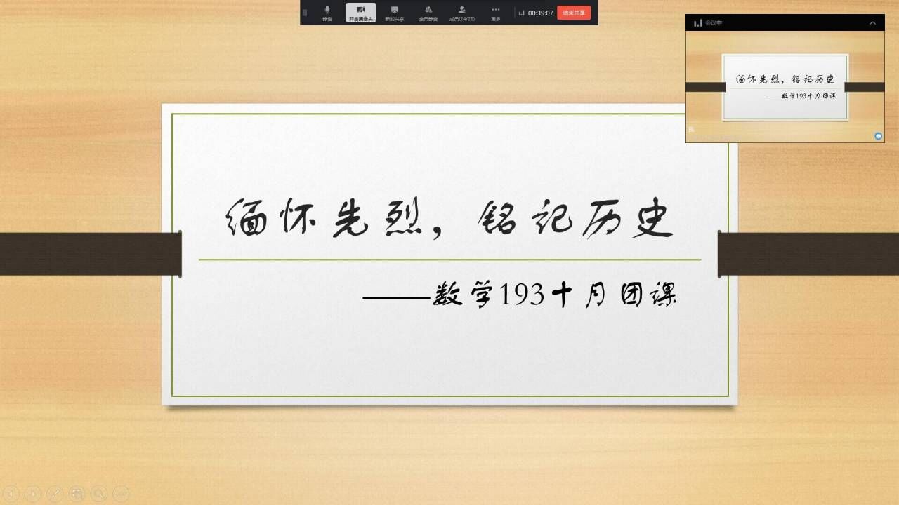 10月1日,正值国庆中秋双节来临,数学科学学院为丰富同学们的大学生活,提高同学们的思想觉悟特开展以“国家公祭日”“国庆节”“中秋节”为主题的团课活动。