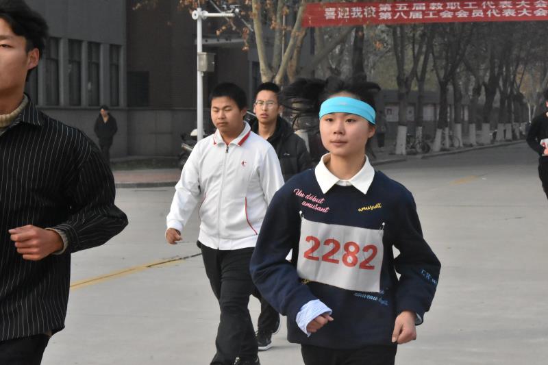 随着一声令下,全体男生率先出发,女生紧随其后,寒冷的天气丝毫没有减少同学们奔跑的热情,他们一次次调整呼吸,超越下一个目标,下一个自己。赛道旁,学生干部作为志愿者为学弟学妹们加油助威,及时送上饮用水和纸巾。即使是在掉队的情况下,同学们也不甘示弱,奋起向前,直冲终点,他们强健的步伐和持之以恒的精神成为了赛道上最靓丽的风景线。
