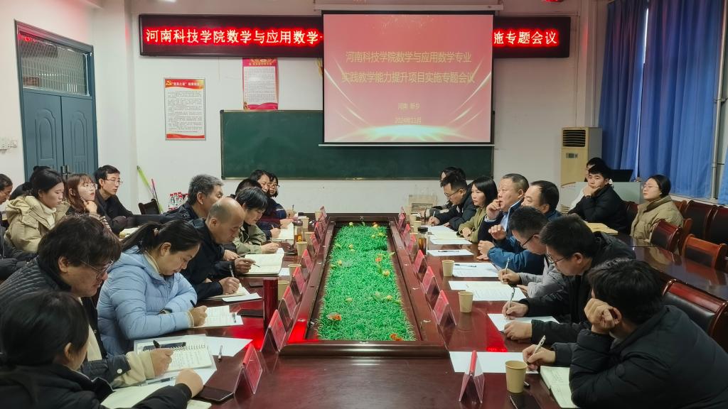 11月28日下午,河南科技学院数学与应用数学专业实践教学能力提升项目实施专题会议在八号楼303会议室举行。河南师范大学数学与信息科学学院副院长裴永刚、新乡学院数学与统计学院副院长皮磊、河南师范大学附属中学校长侯伟、教师付帅、刘晨曦、新乡学院附属中学教师宋艳梅、数学科学学院班子成员、师范专业负责人以及学科教学研究生40余人参加会议。