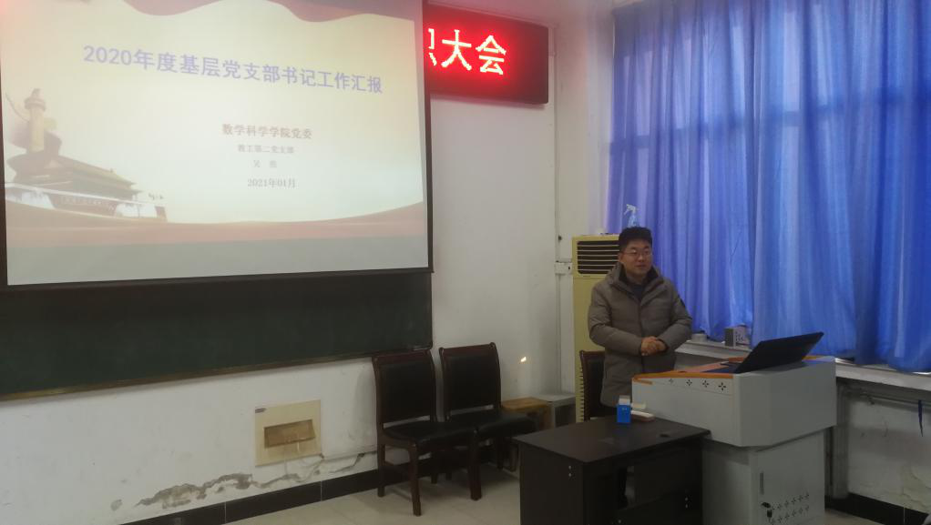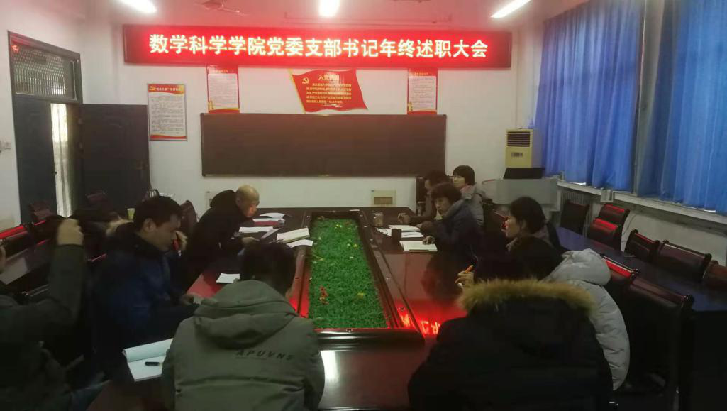 1月5日下午,数学科学学院在学院会议室召开2020年党支部书记述职大会。院党委班子成员、支部书记、支部委员及党员师生代表参加会议。会议由学院党委书记任建成主持。