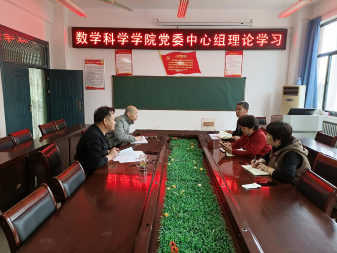 3月31日上午,数学科学学院党委中心组在学院会议室开展集中理论学习,集中学习《习近平总书记在党史学习教育动员大会上重要讲话》。学院党委中心组成员参加本次学习。会议由院党委书记任建成主持。