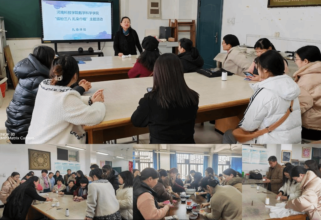 为热烈庆祝三八国际劳动妇女节,3月7日,数学科学学院举办了主题为“缤纷三八 扎染巾帼”的主题活动。此次活动特别邀请了我校服装学院的专业教师,为大家深入讲解了扎染这一传统工艺的起源和技艺精髓,并带领全体女教工亲自动手,体验扎染的魅力。