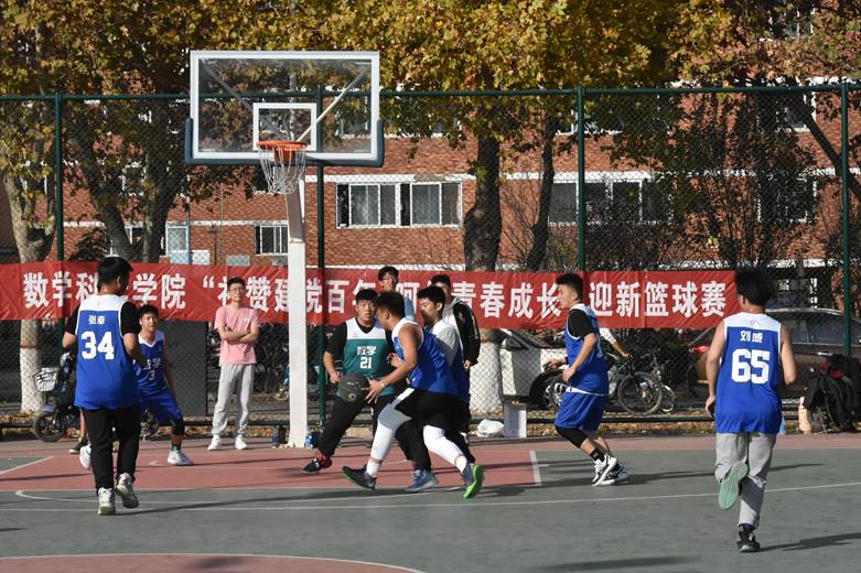 11月13日下午,我院在东区篮球场举行“礼赞建党百年,呵护青春成长”迎新篮球赛。院党委副书记李军民、王军涛,团委书记贾普君,团委副书记刘喜明也莅临现场观赛,我院各年级代表队同场竞技,为在场观众奉献了一场精彩的篮球赛。