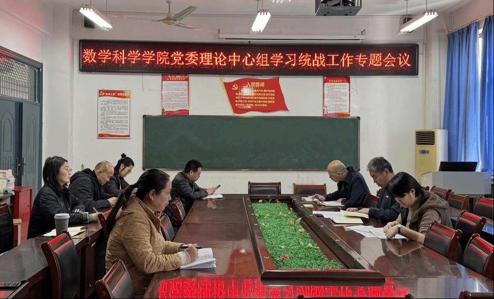 3月14日下午,数学科学学院在8号楼303会议室召开党委理论学习中心组学习统战工作专题会议,学院党委委员、支部书记参加会议。会议由学院党委书记李军民主持。
