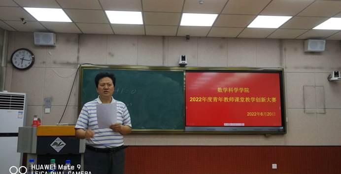 为进一步落实全国教育大会精神以及立德树人根本任务,提升教师教学技能,打造教学改革风向标,根据河南省省委“能力作风建设年”活动要求以及河南科技学院《关于深入开展“大学习大培训大练兵大提升”活动实施方案》精神,6月20日下午,数学科学学院在6503智慧教室成功举行了青年教师课堂教学创新大赛。比赛邀请动物科技学院副院长陈金山、化学化工学院副院长谷永庆、资源与环境学院副院长王国昌、食品学院副院长张令文、园艺园林学院副院长沈军担任评委。数学科学学院院长张万芹、副院长马宝林以及学院部分教师20余人观看了比赛。