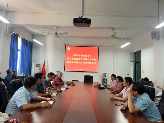 5月18日下午,应外国语学院邀请,河南大学博士生导师高继海教授在7#211会议室以“英国小说的流变”为题作讲座。外国语学院全体教师以及2021级硕士研究生聆听了讲座。讲座由外国语学院院长李会民教授主持。